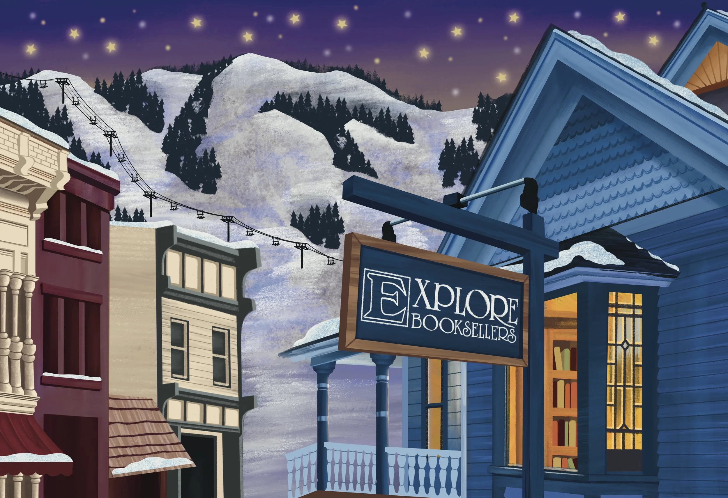 Digital illustration created for an independent bookstore in Aspen, Colorado.