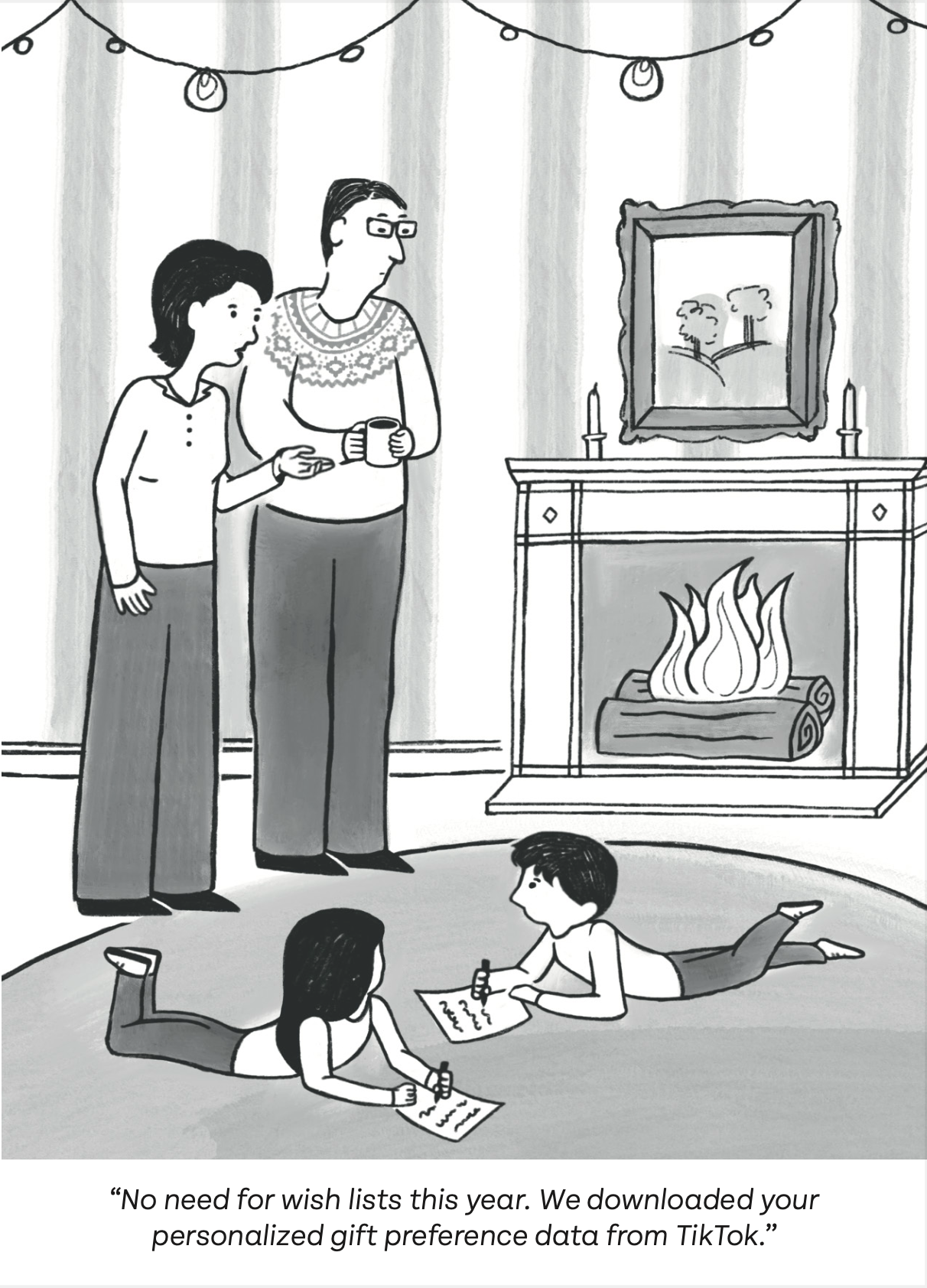 Illustration for a data privacy themed holiday card.